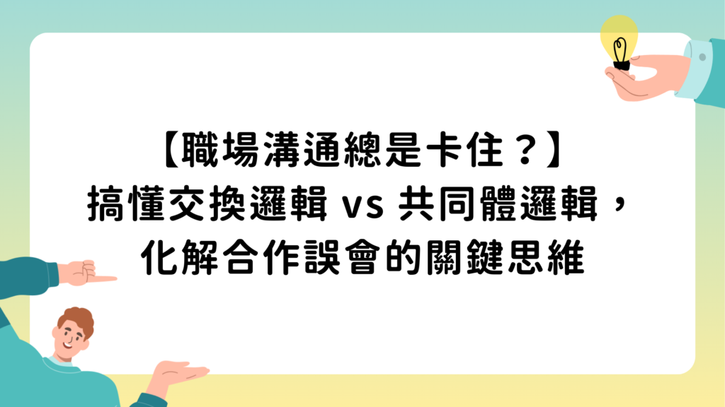 職場總是合作不順、誤會不斷?問題可能不是你不夠努力,而是彼此站在不同的「工作邏輯」上。本文帶你認識交換邏輯與共同體邏輯,破解溝通僵局、找回職涯主導權。