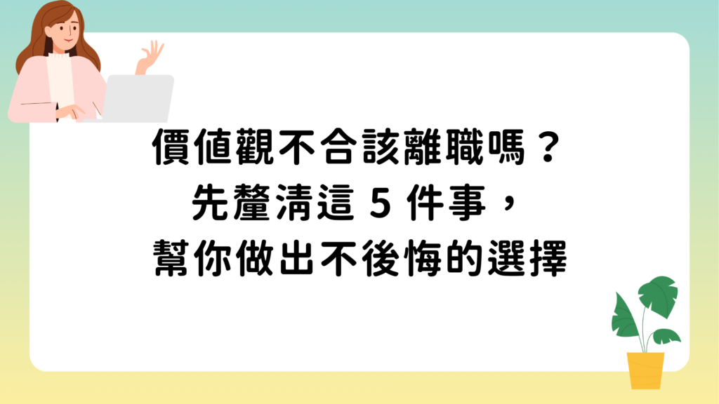 當工作讓你越來越不像自己,是該離職還是調整?本篇從職涯諮詢角度整理 5 個離職前必想清楚的重點,幫助你辨別是溝通落差還是真正的價值觀衝突,做出更成熟的職涯選擇。