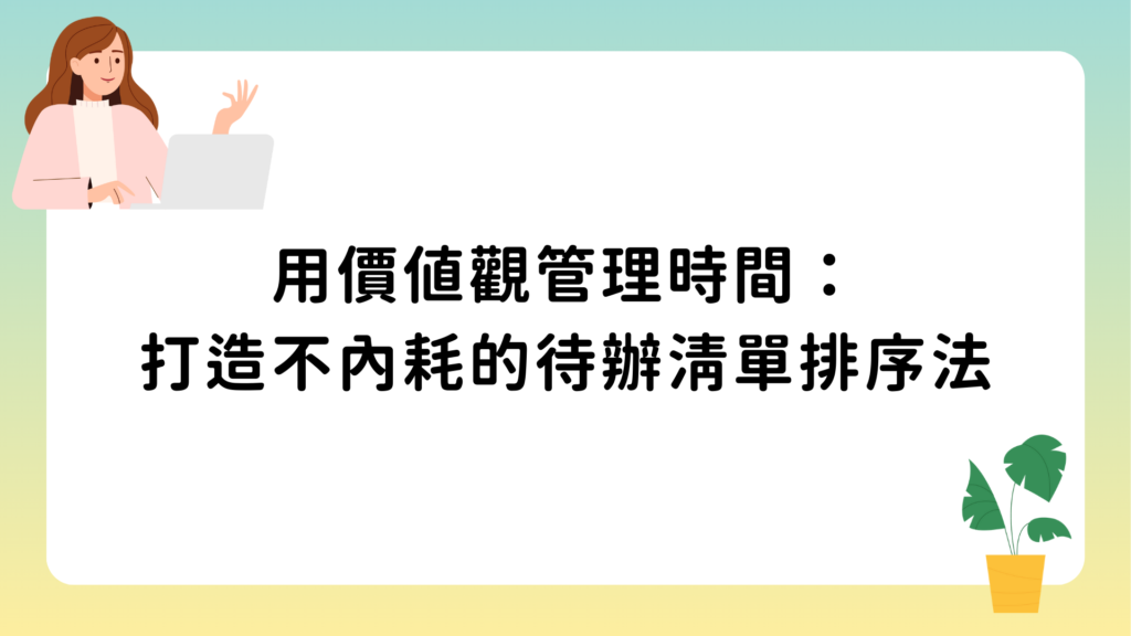 你總覺得待辦清單越做越累?真正的時間管理關鍵,不在效率,而是排序標準。學會用「價值觀」決定時間分配,讓你每天不再迷失在任務中,而是向真正重要的目標前進。